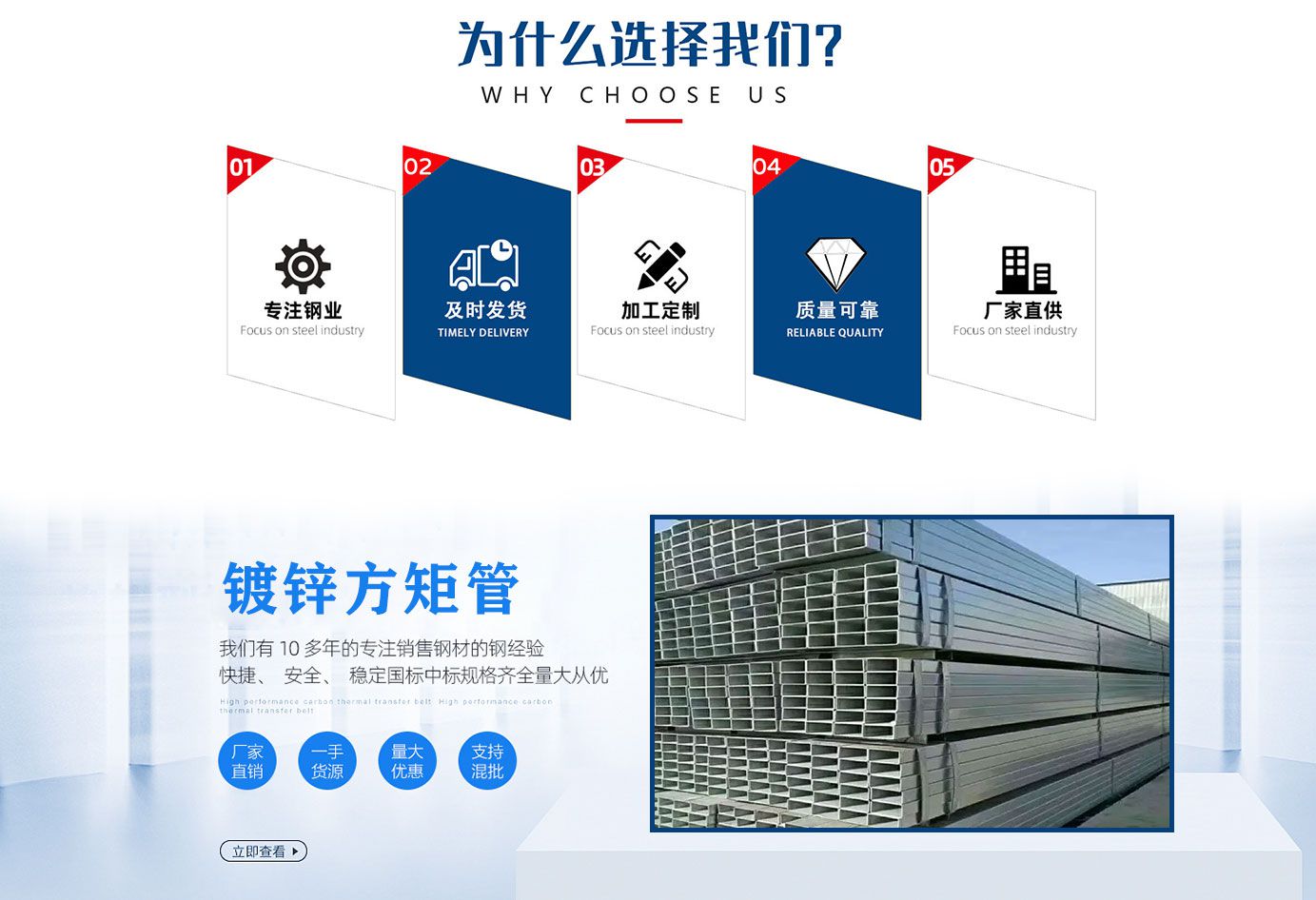 天津奧冶鋼鐵銷售有限公司長期銷售熱鍍鋅無縫鋼管,大口徑熱鍍鋅無縫管,鍍鋅無縫管,熱鍍鋅方矩管,鍍鋅方矩管等各種鍍鋅產(chǎn)品,廣泛應(yīng)用于建筑、機(jī)械、煤礦、化工、電力、鐵道車輛、汽車工業(yè)、公路、橋梁、集裝箱、體育設(shè)施、農(nóng)業(yè)機(jī)械、石油機(jī)械、探礦機(jī)械等制造工業(yè)。鍍鋅鋼管表面有熱浸鍍或電鍍鋅層的焊接鋼管。鍍鋅可增加鋼管的抗腐蝕能力,延長使用壽命。鍍鋅管的用途很廣,除作輸水、煤氣、油等一般低壓力流體的管線管外,還用作石油工業(yè)特別是海洋油田的油井管、輸油管,化工焦化設(shè)備的油加熱器、冷凝冷卻器、煤餾洗油交換器用管,以及棧橋管樁、礦山坑道的支撐架用管等。熱鍍鋅管是使熔融金屬與鐵基體反應(yīng)而產(chǎn)生合金層,從而使基體和鍍層二者相結(jié)合。熱鍍鋅是先將鋼管進(jìn)行酸洗,為了去除鋼管表面的氧化鐵,酸洗后,通過氯化銨或氯化鋅水溶液或氯化銨和氯化鋅混合水溶液槽中進(jìn)行清洗,然后送入熱浸鍍槽中。熱鍍鋅具有鍍層均勻,附著力強(qiáng),使用壽命長等優(yōu)點(diǎn)。熱鍍鋅鋼管基體與熔融的鍍液發(fā)生復(fù)雜的物理、化學(xué)反應(yīng),形成耐腐蝕的結(jié)構(gòu)緊密的鋅一鐵合金層。合金層與純鋅層、鋼管基體融為一體,故其耐腐蝕能力強(qiáng)。本公司將面向客戶的不同要求,努力做好產(chǎn)品的售前售后服務(wù)工作,愿以良好服務(wù)與各界朋友真誠合作,質(zhì)量出效益,信譽(yù)出市場。...